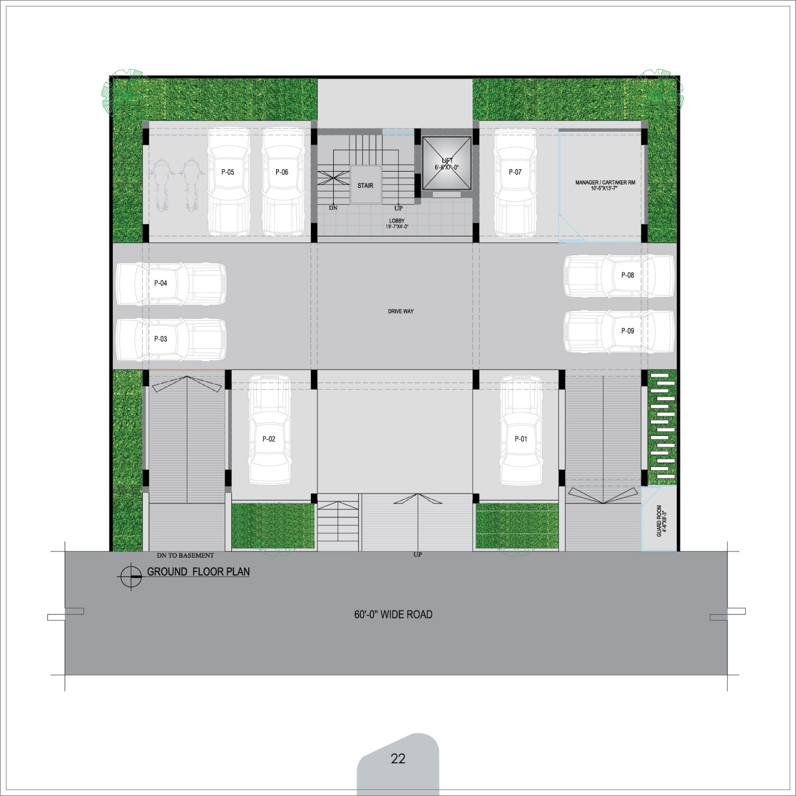 • Reception, • Guard Post, • Generator Room, • Sub-Station, • Guard • Accommodation → at Ground Floor.
